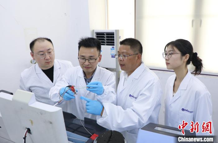 研究团队进行富锂锰基正极材料的电化学性能测试(从左到右:梁灏严博士,邱报副研究员,刘兆平研究员,顾可欣博士研究生)。中国科学院宁波材料所供图