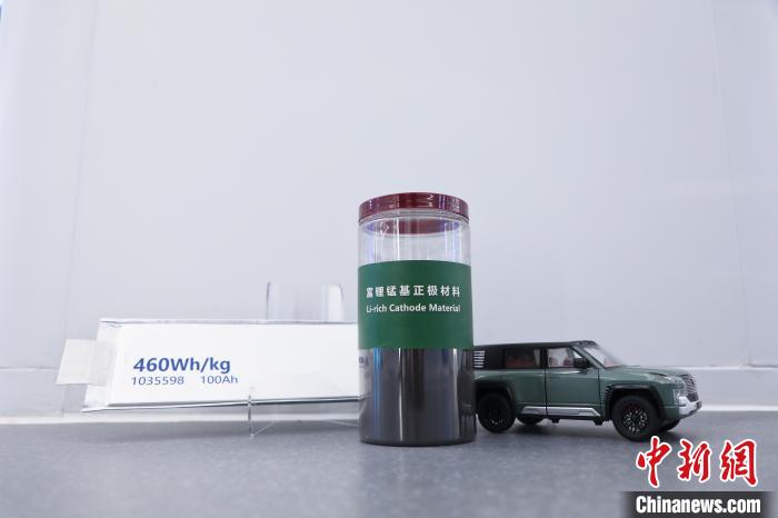 富锂锰基正极材料及基于富锂锰基正极和硅碳负极的高比能锂离子电池(图中车辆为模型)。中国科学院宁波材料所供图