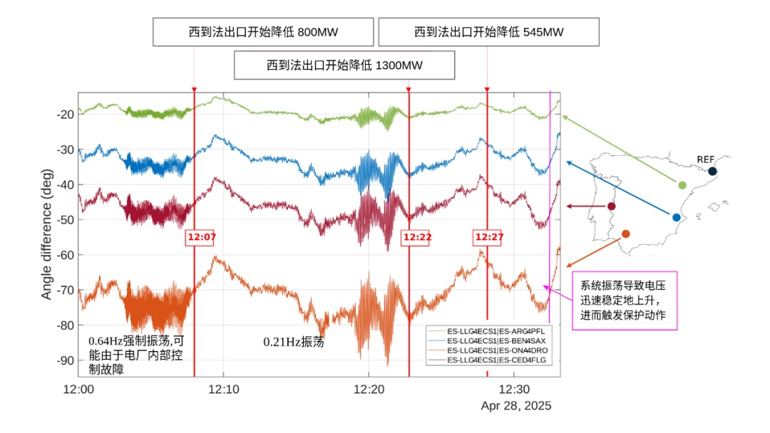 电力系统是一个极其复杂的大规模系统,涵盖发电、输电、变电、配电和用电等全链条环节,事故的发生不能简单归咎于发电、输电、负荷或储能中的某个单一环节。就像当年将2003年美国东北大停电归咎于市场化改革,或将2021年得克萨斯州大停电归咎于风电,都是对复杂系统问题的过度简化。此次西班牙大停电,无论是发电侧还是电网环节,都需要通过谨慎、中立的分析才能得出合理结论。西班牙官方调查报告目前给出了一些成熟的结论:首先,新能源高渗透率下的电网运行特性比传统电网更为复杂,而电网本身缺乏充分的应对预案,技术设计存在滞后,这是首要的管理失误;其次,9个传统机组在关键时刻未能提供有效的电压或频率响应,构成次要责任。但仍有若干关键细节尚未厘清,例如,在停电发生前的30分钟内,相量测量单元(PMU)记录到电网频率出现约0.2Hz 的低频振荡,虽然随后被阻尼抑制,但表明系统已有不稳定征兆。这种振荡似乎发生在伊比利亚半岛与欧洲大陆主电网之间,两者处于相反的电网相位,说明可能存在区域间的耦合问题。值得注意的是,2016年12月与2021年7月,西班牙曾经历过类似的振荡和断电事件,当时的影响较轻。当时欧洲南北的电网频率差约为0.25Hz,而本次事故中降至约0.217Hz,这或与波罗的海国家和乌克兰近期并入欧洲大陆同步电网(CESA)有关。我们目前只知道停电的核心原因是振荡和电压控制之间意外的相互作用。为应对振荡而采取的措施(通过重新连接断开的线路和减少对法国和葡萄牙的出口来稳定电网)产生了降低输电线路负荷的效果,从而减少了无功功率消耗,因此提高了电压。随着调查的深入,事件背后的系统性原因或许会更清晰地披露出来。