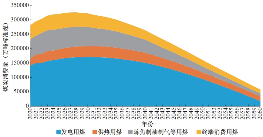 我国煤炭消费预计在“十五五”前中期进入49.5亿~51亿吨(国产原煤+进口商品煤)的峰值平台期,2030年略有回落至49亿吨左右,“十六五”时期下降显著,2035年降至46亿吨以内,但仍占据能源消费的主体地位(占比约42%)。2035年后,随着非化石能源规模化发展,火电用煤逐步下降,同时各行业终端用能电气化替代加速,煤炭消费量将加速下降,到2050年降至24.5亿吨左右,2060年进一步降至8亿~10亿吨,占一次能源消费的百分比较2024年下降43个百分点,保持在10%左右。