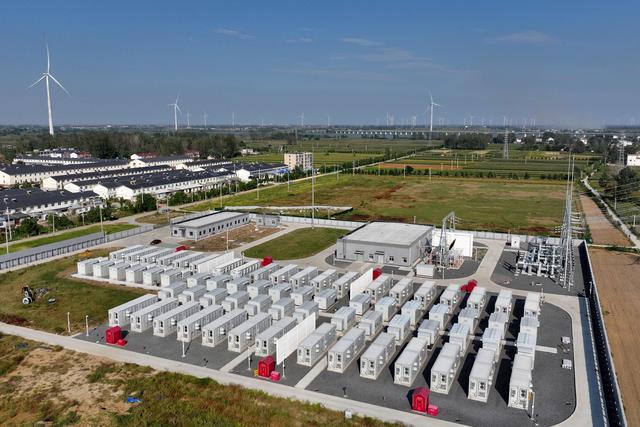 这是2024年9月27日拍摄的林洋安徽五河风光储一体化基地的储能设施。(无人机照片)。新华社记者黄博涵摄
