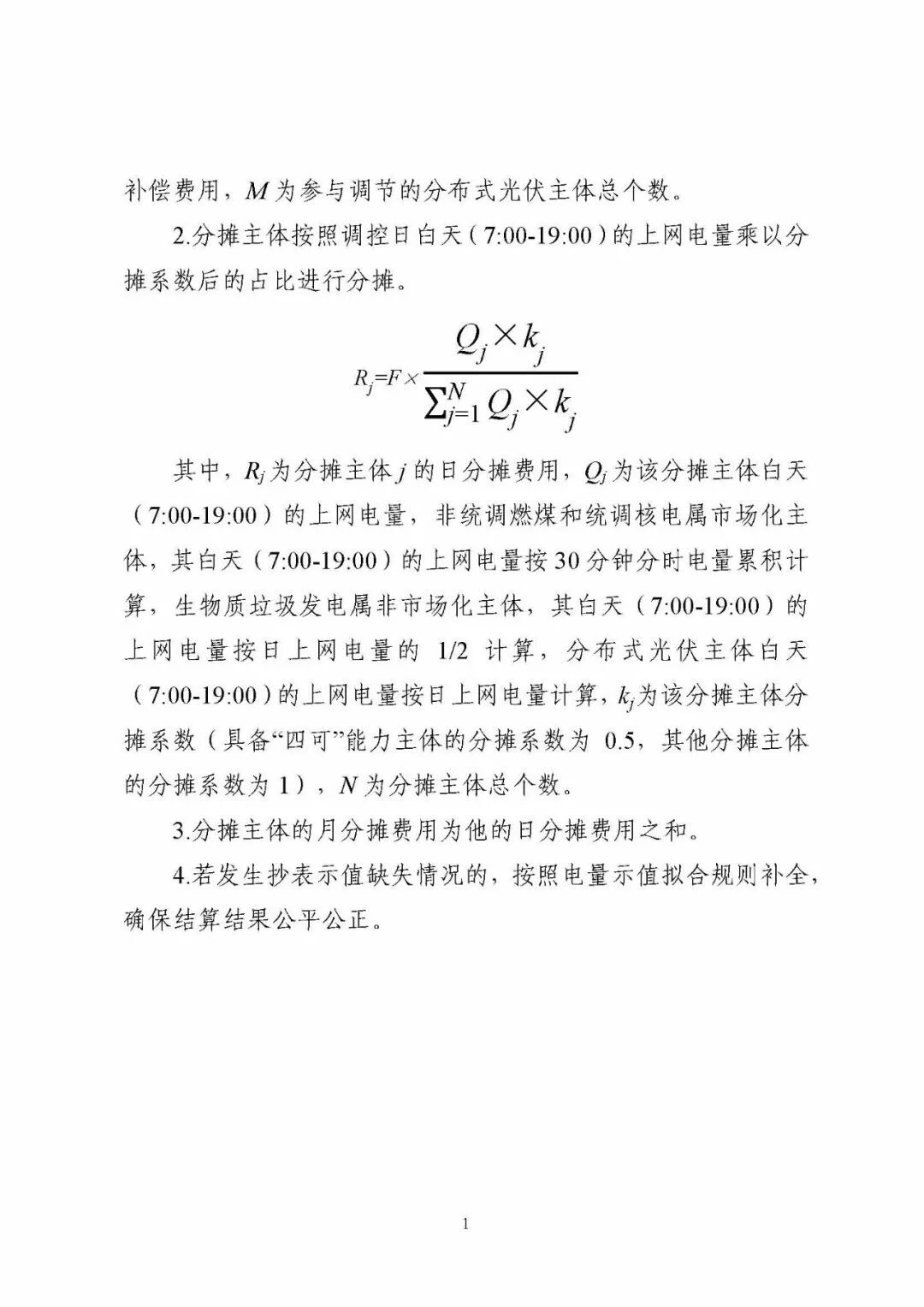 参与调节的分布式光伏主体获得补偿,补偿费用纳入次月结算电费。补偿资金由非统调燃煤、统调核电、生物质垃圾发电和分布式光伏发电主体(除自然人户用项目外)进行分摊。