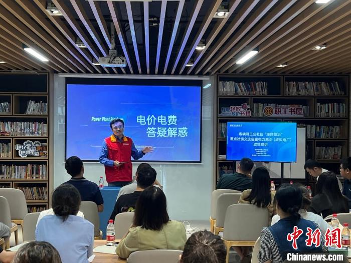 国网宁波市北仑区供电公司在宁波市北仑区春晓街道春晓湖工业社区宣讲虚拟电厂政策。 庞中国 摄