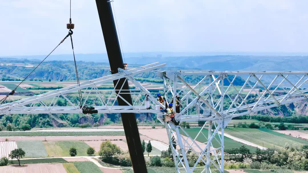 2024年5月9日,陇东750千伏火电送出工程开展铁塔组立试点现场。雷清然摄