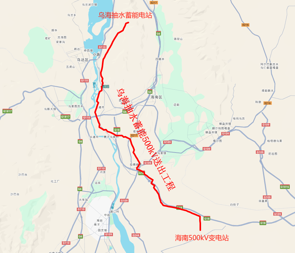 乌海海南500千伏输变电工程位于乌海市海南区。项目内容包括新建500千伏变电站(主变2*1200兆伏安)、扩建两个500千伏间隔、新建500千伏线路约15公里、配套建设相应通信和二次系统工程。项目建成后,可满足乌海地区尤其是低碳产业园区新增负荷供电需求,减轻现有乌海500千伏变供电压力,优化地区220千伏供电结构,合理分配有效资源,提升乌海地区整体供电能力。