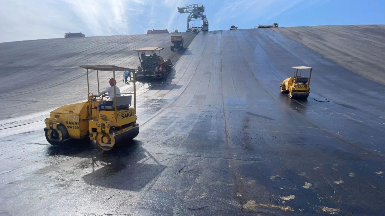 电站下水库大坝沥青混凝土面板摊铺