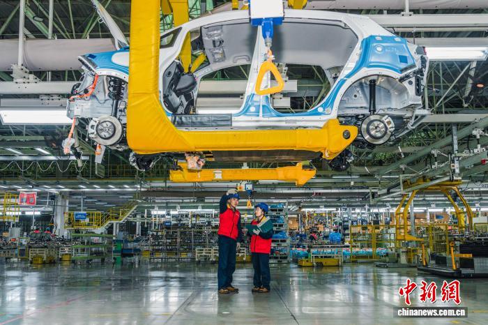 吉利汽车钱塘制造基地,电力工作人员了解企业生产用电需求。丁豪 摄