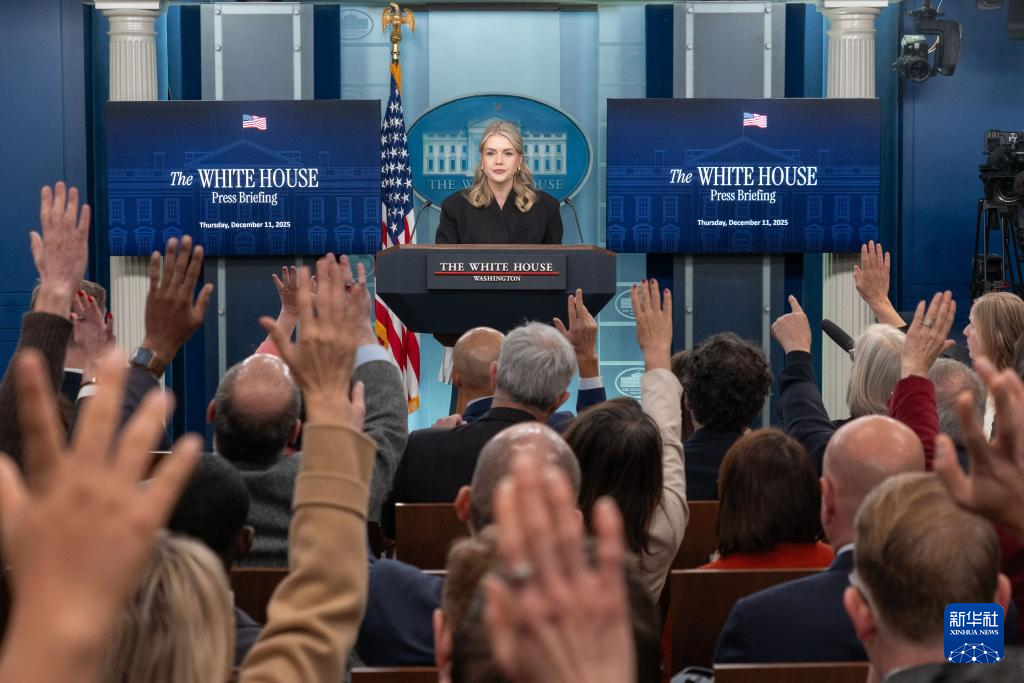 12月11日,在美国首都华盛顿白宫,白宫新闻秘书卡罗琳·莱维特出席记者会。新华社发(李源清摄)