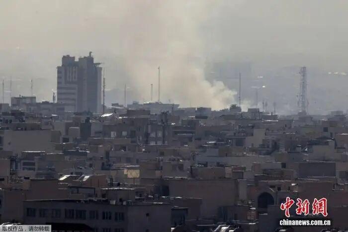 据卡塔尔阿拉伯电视台2月28日报道,伊朗首都德黑兰市中心发生爆炸。图为德黑兰市中心发生爆炸后,浓烟冲天。