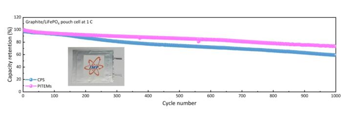 科研团队指出,在3毫安每平方厘米的条件下,使用聚酰亚胺耐高温隔膜的锂/锂对称电池可稳定循环1200小时,且在锂金属电极表面实现均匀、致密的锂沉积,表明其具有优异的锂枝晶抑制能力。此外,使用该隔膜的磷酸铁锂软包电池在常温下可稳定循环1000次,容量保持率为73.25%,并表现出优异的高温性能,可在150摄氏度的环境温度下正常工作。