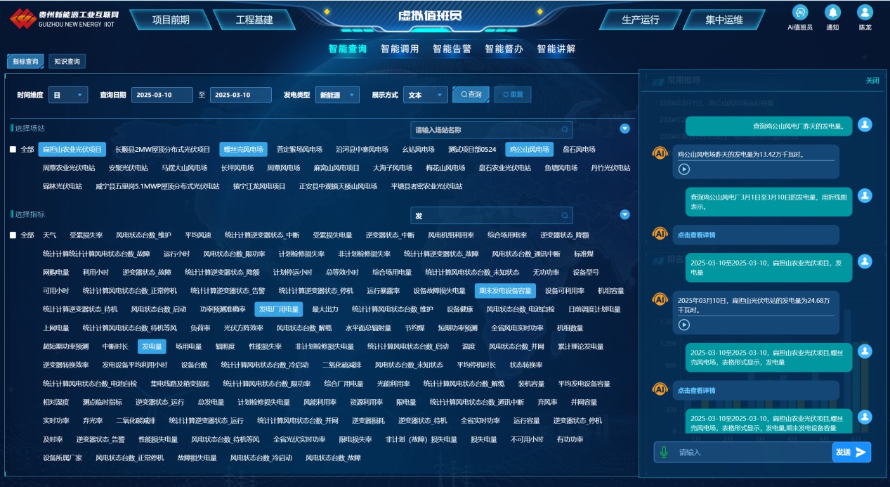 这一创新应用深度融合自然语言大模型、语音交互模型及检索增强生成(RAG)技术,依托自主研发的AI智能体开发平台,成功接入了DeepSeek、星火、通义千问等多个主流大模型,面向值班人员、维护人员、生产管理人员打造出集智能告警、智能查询、智能督办、智能调用等为一体的新能源生产运维助手。