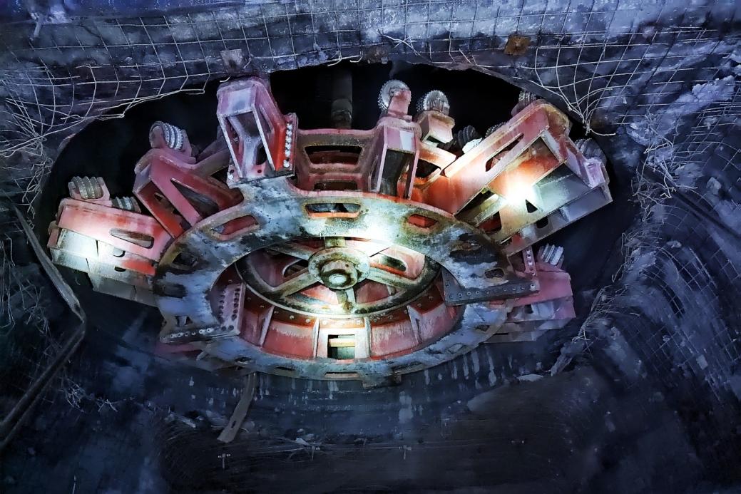 此次施工是国内首次自主实施6.6米大孔径反井钻孔作业,无经验可借鉴。为实现突破,该公司对传统反井钻机进行全面升级改造:动力系统采用高功率电机和大扭矩液压马达,配备全液压驱动系统,通过主泵站和副泵站协同工作,精准控制动力头动作,主机功率达282.5千瓦,最大扭矩400千牛·米;结构上以高强度钢材制作框架,优化支撑结构,提升设备稳定性与可靠性;钻头改为拼装式阶梯结构,通过阶梯式扩孔分解作业压力,优化滚刀布局,采用“挤压—剪切”复合破岩机制提升效率与质量;配套吊装系统最大起吊3.2吨,工作幅度8.2米,效率较传统人工吊装提升5倍,安全事故率降低90%。
