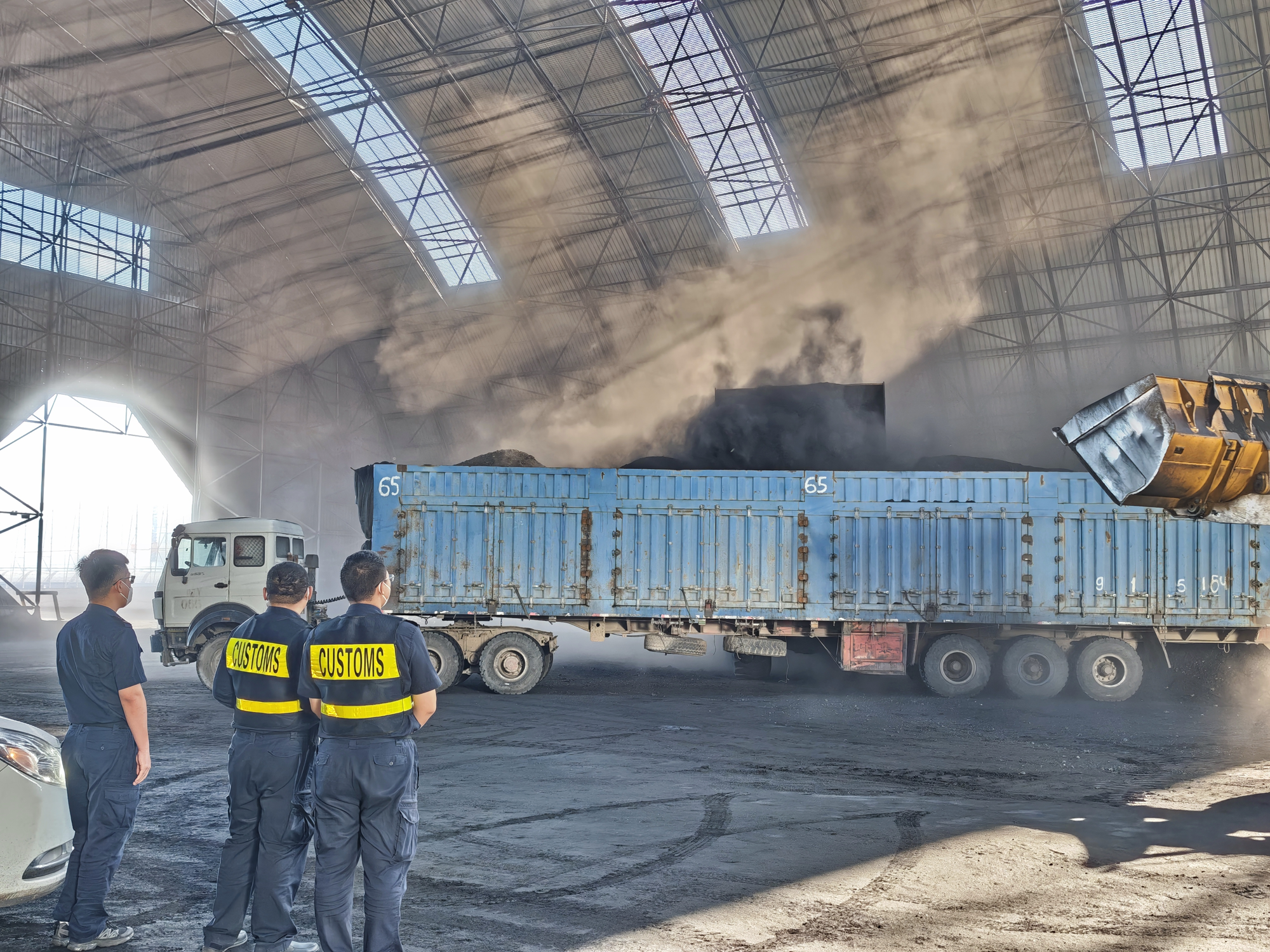 额济纳海关对进口不合格退运煤炭进行监装(王晋雅 摄)