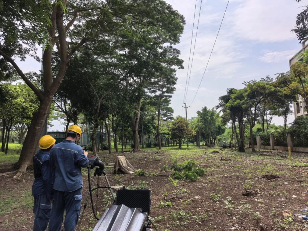 南方电网广东珠海金湾供电局南水供电所启用激光清障技术,对配电线路周边树障开展紧急清理,筑牢防台保电防线。(邵寿甲恒 摄)