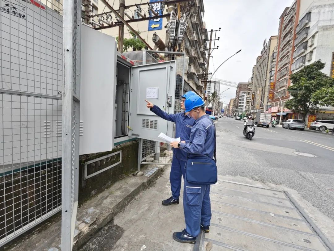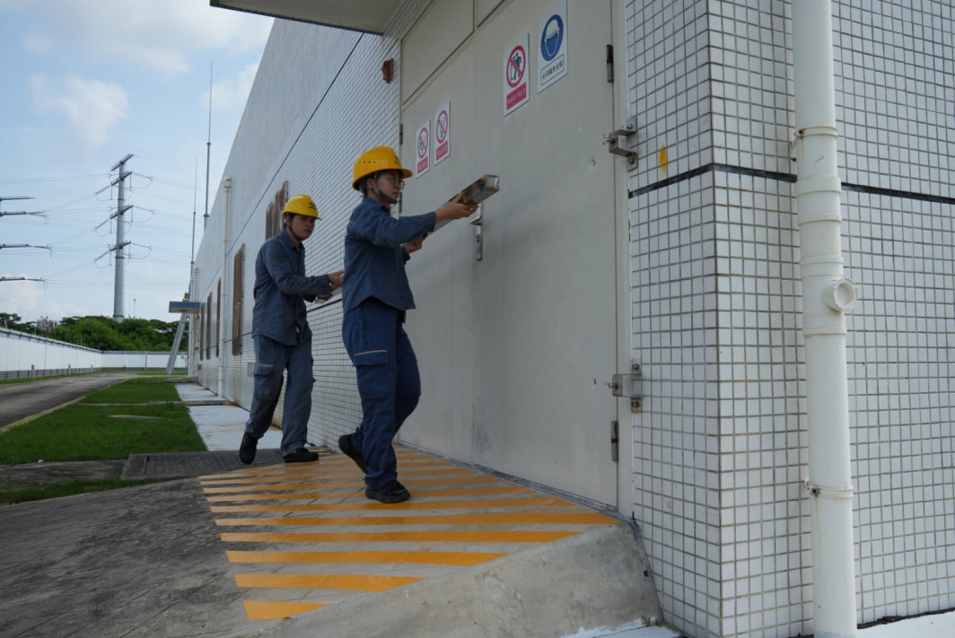 南方电网广东湛江赤坎供电局工作人员主动走访湛江市政府大楼等单位,对其供电设施、自备电源和应急处理措施等进行检查,提前对自备电源、抽水设备进行试运行。(列钊 摄)