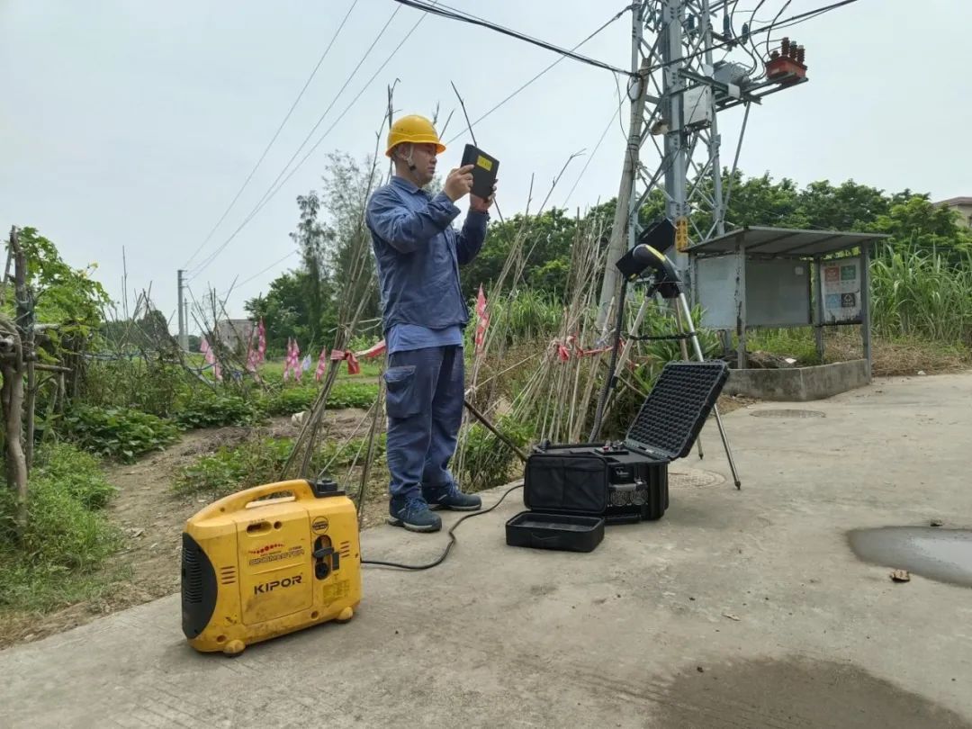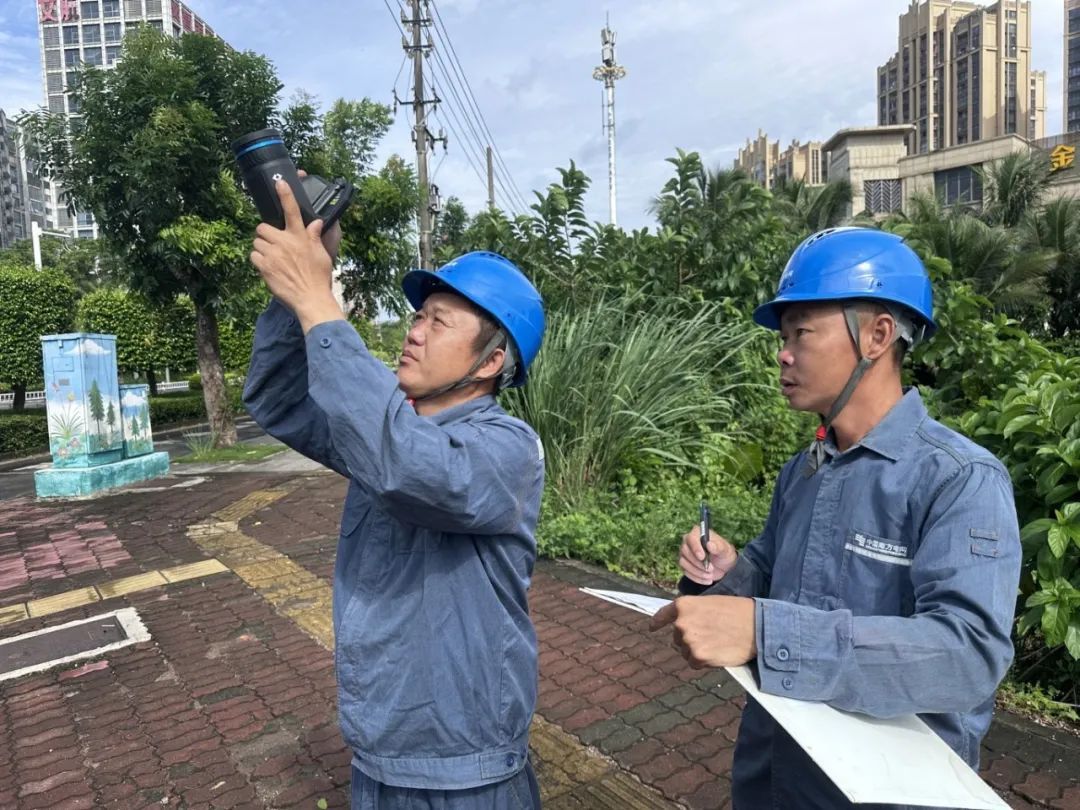 南方电网广东揭阳普宁局流沙南供电所工作人员对线路设备进行特殊巡视。(李玉龙 摄)