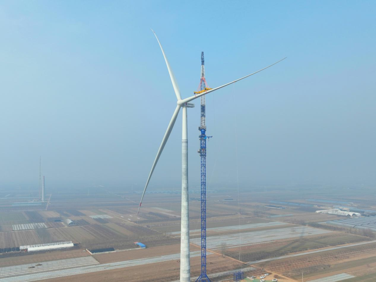 该项目位于衡水市深州市,建设容量50兆瓦,拟安装8台6.25兆瓦风力发电机组,在河北公司范围内率先采用动臂塔式起重机,有效节约项目用地成本,投运后每年可向电网输送清洁能源约1.1亿千瓦时。