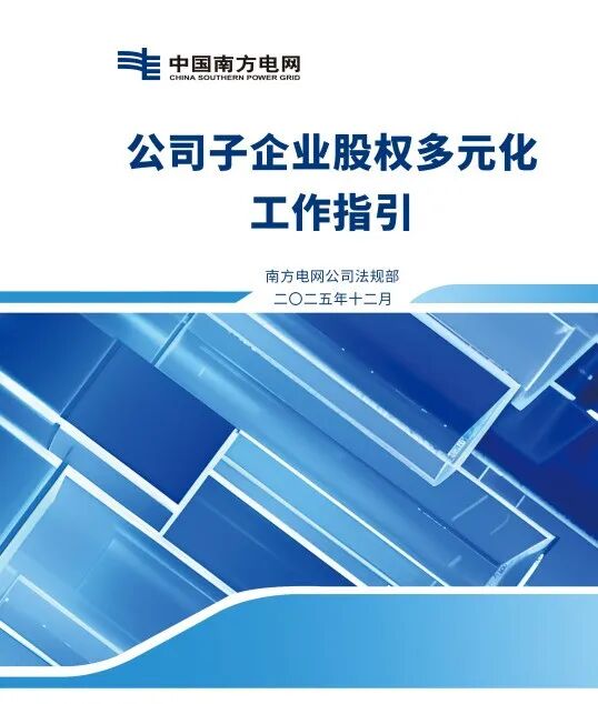 近日,南方电网公司印发《关于进一步发挥多元股东治理优势的意见》(以下简称《意见》)和《公司子企业股权多元化工作指引》(以下简称《指引》),旨在贯彻落实党中央、国务院关于完善中国特色现代企业制度的决策部署,为推动集团总部及所属子企业完善多元股东治理机制,发挥多元股东治理优势,更好融入和服务国家发展大局,建设世界一流企业提供有力指导。