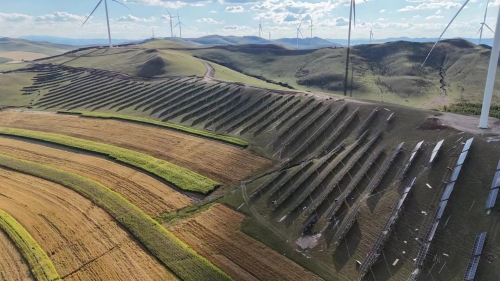 一片片成型的光伏板整齐排列在承德坝上草原上,沿着地势绵延起伏,犹如一朵朵盛开在北国初冬阳光下的太阳花,与绿色的草原交相辉映。10月31日上午,在一声声爆竹声和建设者的欢呼声中,水电十六局承建位于河北承德坝上草原的华电丰宁100兆瓦牧光储氢一体化项目成功并网。