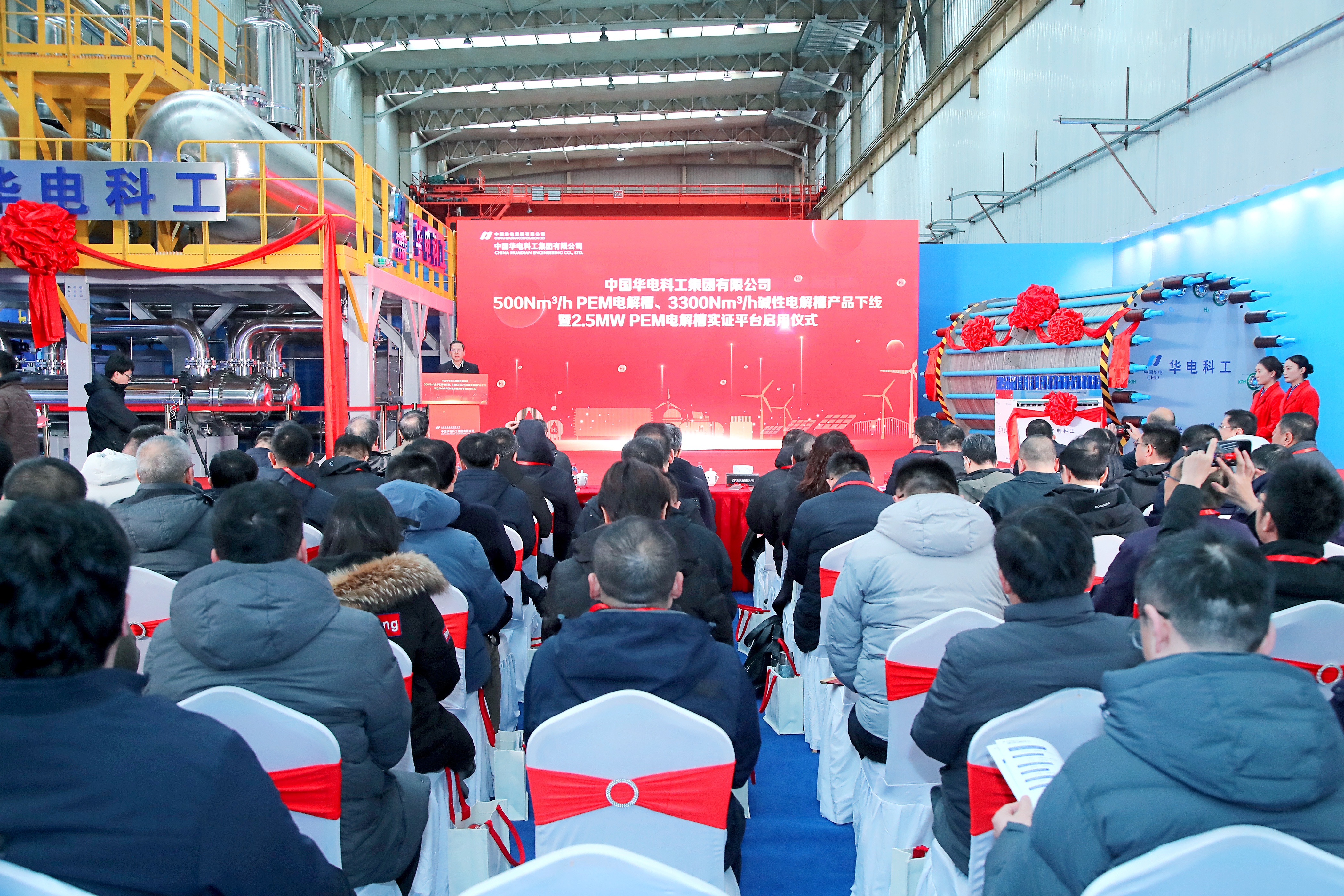 中国能源新闻网讯(记者 赵坤)1月3日,中国华电集团有限公司所属中国华电科工集团有限公司(以下简称“华电科工”)500标立方/时PEM电解槽、3300标立方/时碱性电解槽产品下线暨2.5兆瓦PEM电解槽实证平台启用仪式在天津北辰区华电(天津)高端智造科创基地举行,标志着我国可再生能源电解水制氢装备实现新突破,对加快构建新型能源体系、促进“双碳”目标实现具有重要意义。