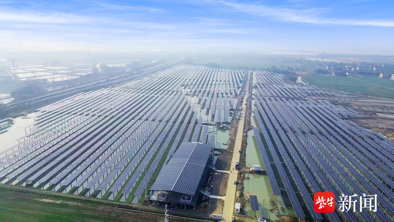 值得一提的是,该项目“上可发电、下可养殖”,即在原有坑塘水面上方架设光伏组件发电,同时下方水域进行水产养殖,在降低碳排放的同时,因光伏组件遮挡部分强光,可抑制水体藻类暴发,一定程度改善水质,整体实现助农增收。因此,该项目极大提高了对原有土地资源的开发和利用,对苏州的能源结构优化、环境保护、乡村振兴等多方面的发展起到了积极的推动作用。