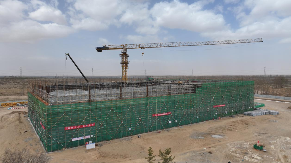 近日,达拉特旗库布齐沙漠新能源生态治理工程技术中心项目全面复工。