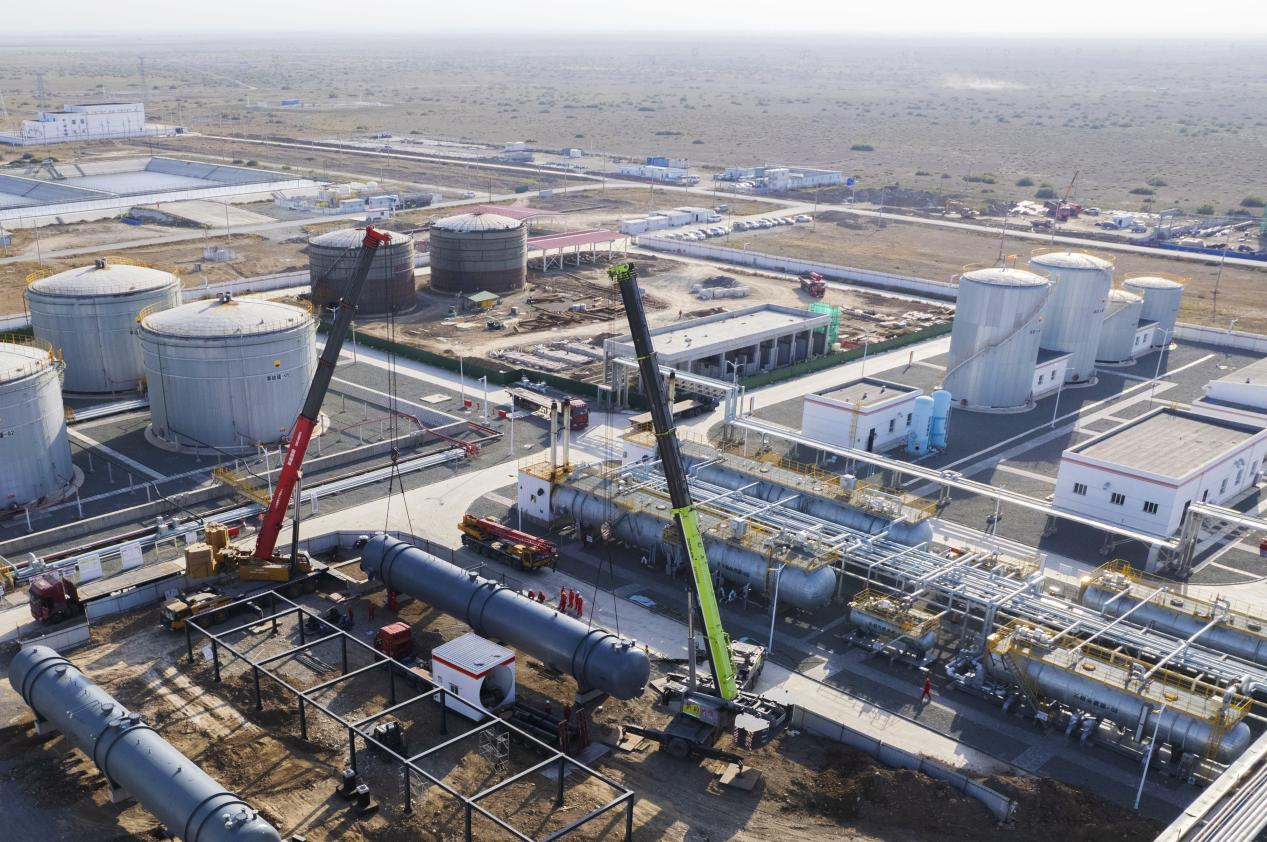 9月13日,页岩油联合站改扩建工程现场在进行设备吊装作业。完工后,该站原油处理能力将由100万吨提升至200万吨。徐志远摄