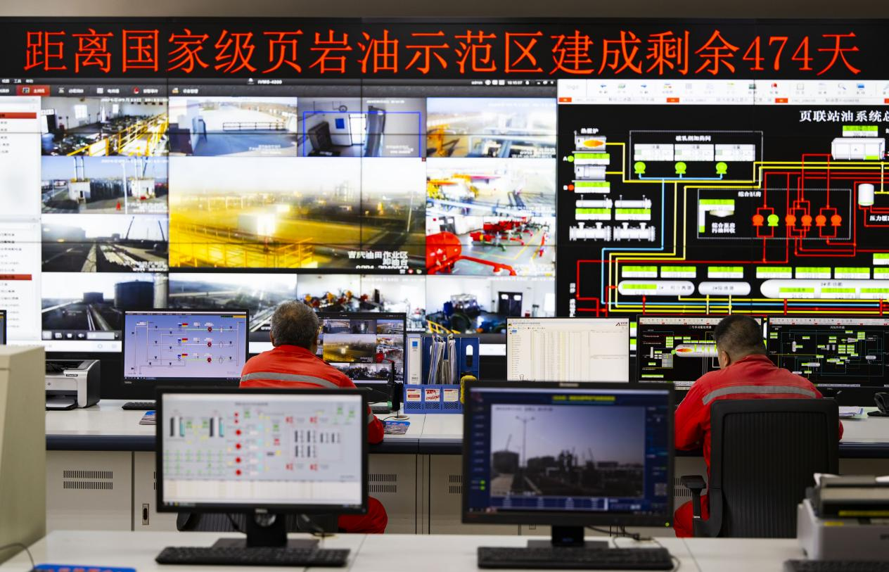 9月13日,在页岩油联合站中控室,在岗员工紧盯各类设备运行情况,确保原油处理平稳运行。张睿摄