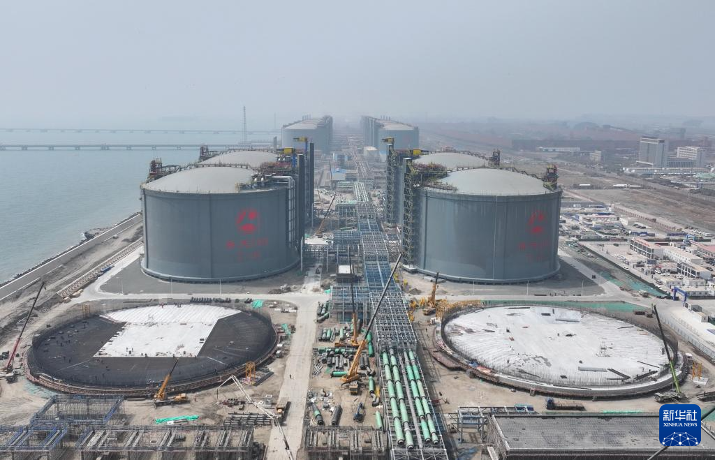 4月17日拍摄的唐山市曹妃甸新天LNG接收站项目建设工地(无人机照片)。
