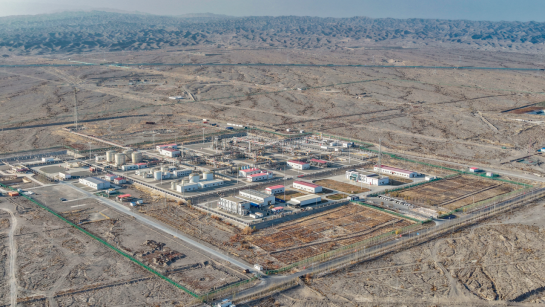 5月上产黄金季,天山南麓的塔里木油田大北处理站除了源源不断地生产着天然气资源,还有气田采出的水正“变废为宝”,转化为氢和锂等高附加值的新能源材料,实现经济效益和生态环保双赢。