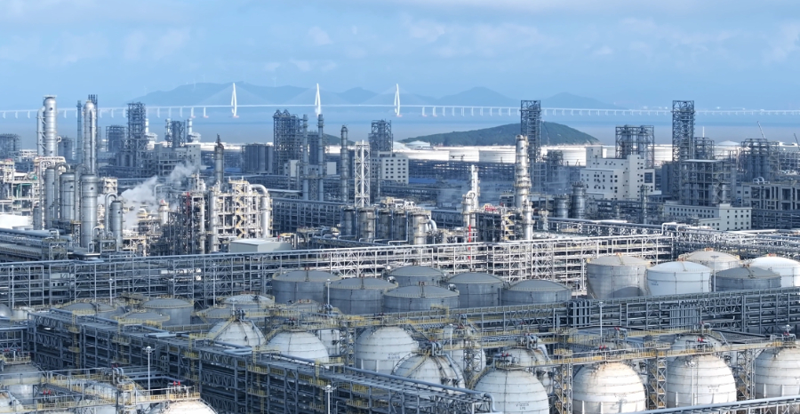位于浙江舟山鱼山岛的浙石化4000万吨/年炼化一体化项目,作为其全球单体规模最大的炼化一体化工程,已全面建成投产。该项目由荣盛集团等联合建设,总规划面积41平方公里,是我国首个"离岸型"石化基地。截至2025年原油加工量已超1.52亿吨,PX(对二甲苯)、乙烯年产能分别达880万吨、420万吨,形成“油头-化身-高化尾”完整产业链,助力为我国石化产业高端化、绿色化发展提供了重要支撑。