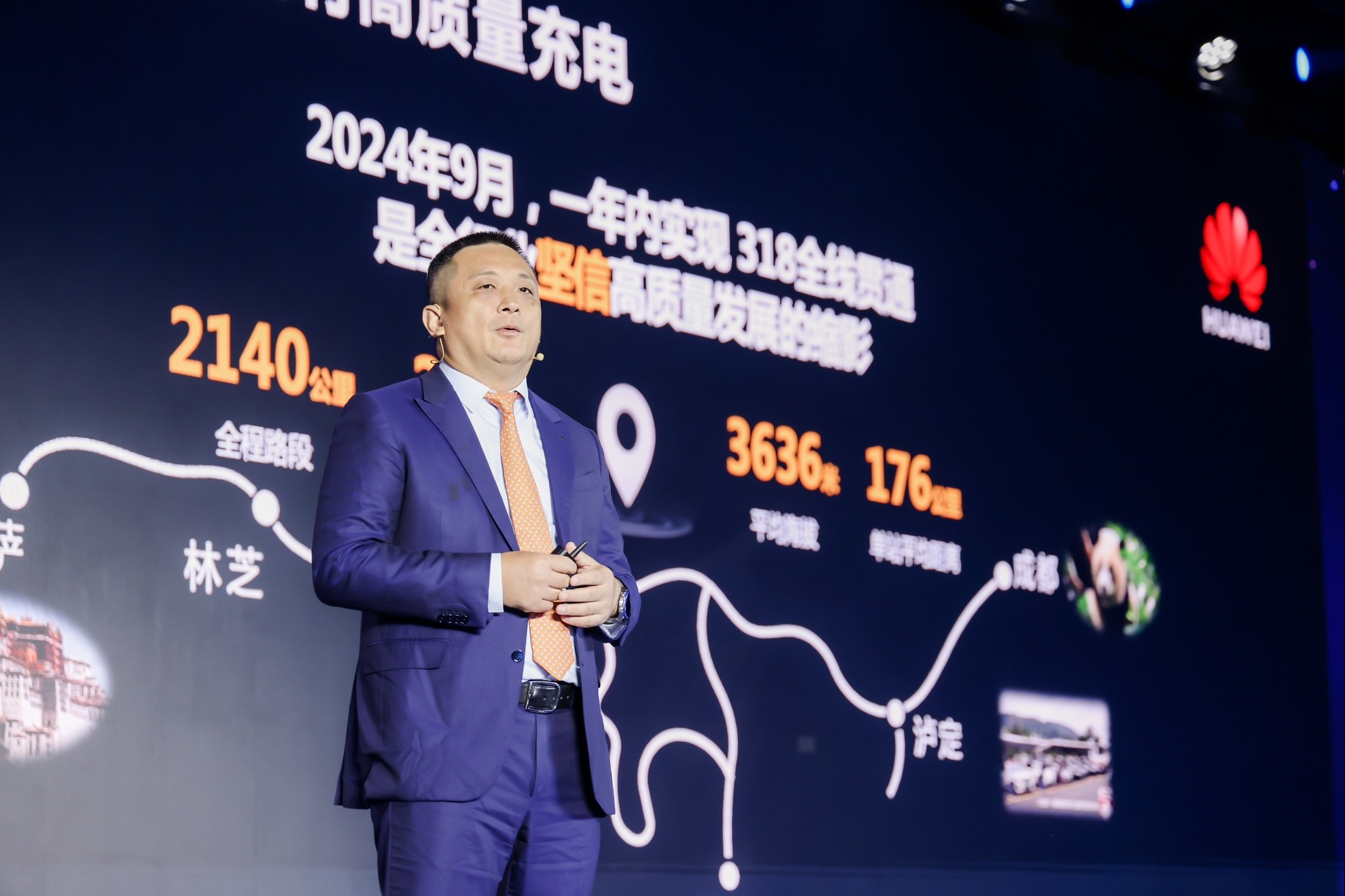 我们的愿景是“有路的地方就有高质量充电”,而且一直在坚定践行。2023年,“318川藏超充绿廊”项目由四川省与西藏自治区联合发起,旨在建设绿色超充综合补能站。华为公司作为设备提供商,充分发挥自身技术优势和创新能力,积极响应并投身川藏绿色交通基础设施建设,提供华为超充解决方案,携手伙伴共建高质量318川藏超充绿廊。