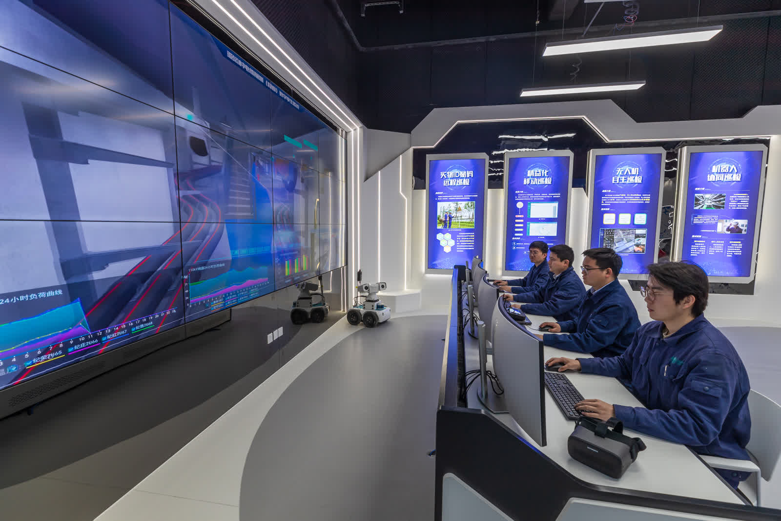 在杭州,全国首个“无人车+机器狗”一体巡检机器人通过自主city walk,进行远距离、跨区域巡检;具身智能走进变电站,实现在复杂检修场景下,应用人形机器人的远程技术指导;一个名为“光擎”智脑的大模型被训练成熟后上线,为杭州电网提供智能推理、主配网拓扑解析、重过载分析等应用……