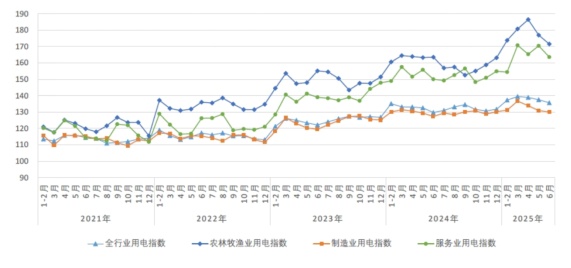 6月份,全社会用电量8670亿千瓦时,同比增长5.4%,增速比上月加快1个百分点。从分产业用电看,第一产业用电量133亿千瓦时,同比增长4.9%;第二产业用电量5488亿千瓦时,同比增长3.2%;第三产业用电量1758亿千瓦时,同比增长9.0%;城乡居民生活用电量1291亿千瓦时,同比增长10.8%。1—6月,全社会用电量累计48418亿千瓦时,同比增长3.7%,增速较上年同期小幅提升。其中规模以上工业发电量为45371亿千瓦时。从分产业用电看,第一产业用电量676亿千瓦时,同比增长8.7%;第二产业用电量31485亿千瓦时,同比增长2.4%;第三产业用电量9164亿千瓦时,同比增长7.1%;城乡居民生活用电量7093亿千瓦时,同比增长4.9%。