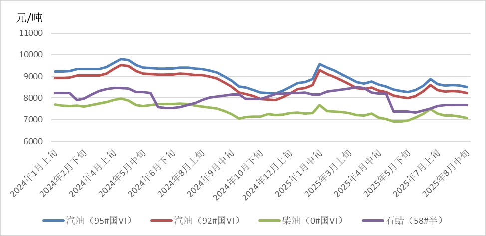 8月中旬,IEA上调全球石油供应过剩预期,美国能源信息署(EIA)预测2025年美国原油日产量将创1341万桶纪录,夏季驾驶旺季临近尾声原油需求下降预期增强,中美关税暂停措施再延长90天等因素推动国际油价延续下跌态势。然而,市场对美联储9月降息的预期增强,阿拉斯加美俄峰会并未取得实质性进展,俄乌局势不确定性推升地缘风险溢价,受上述因素影响,国际油价跌幅有所收窄。