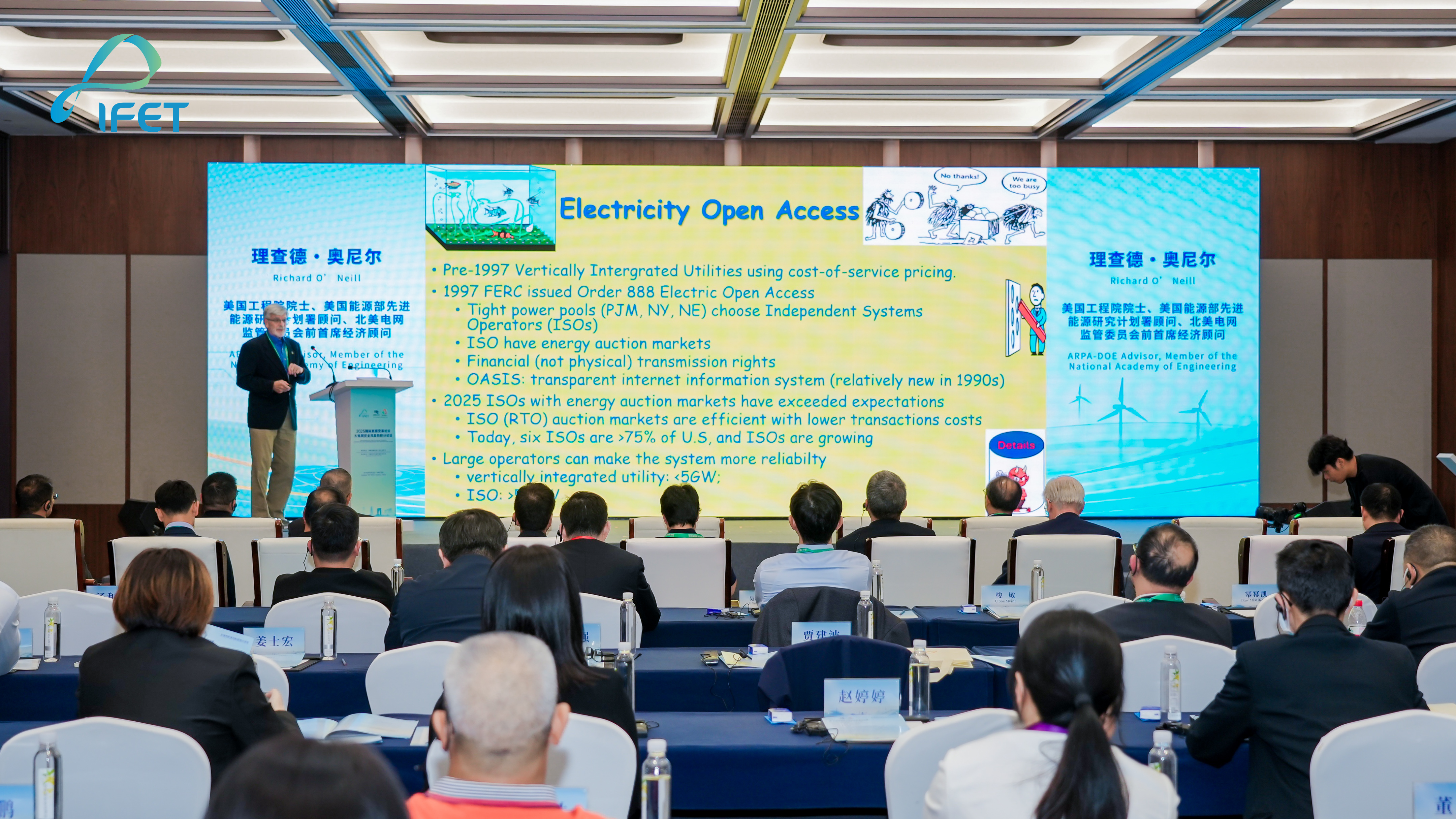 面对系统性风险,本次论坛创新性提出“源网荷储团结治网”理念。美国工程院院士理查德·奥尼尔指出:“用户一定要能够参与到市场当中去,才能够获得灵活稳定和低廉的能源”,他强调需通过市场机制激发多元主体调节潜力。