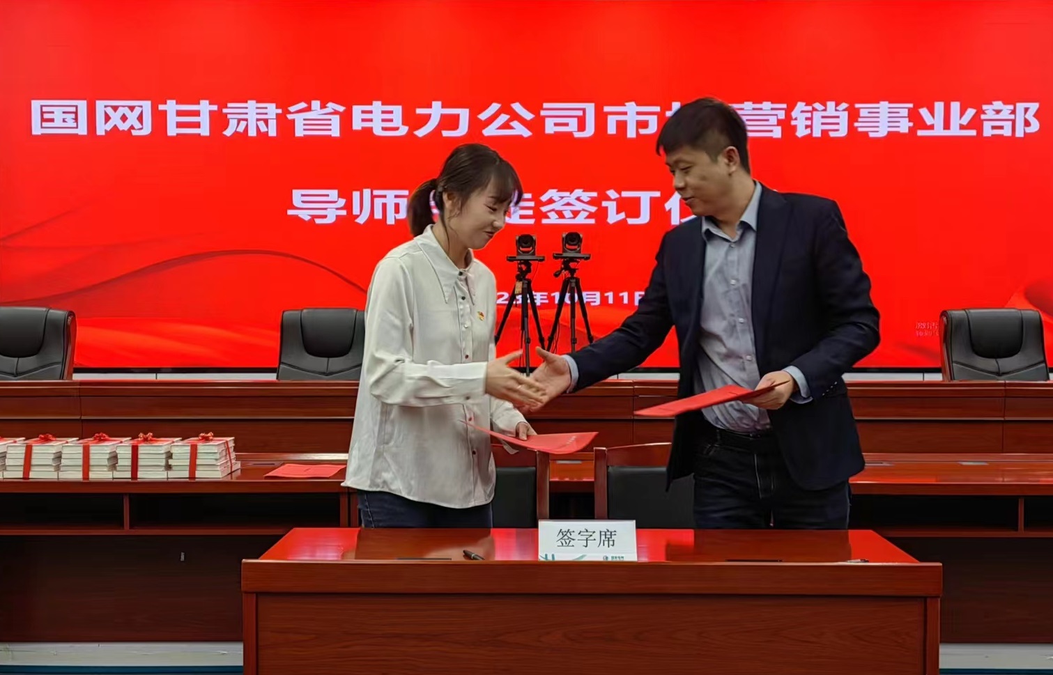 随后,国网甘肃省电力公司市场营销事业部领导向新员工赠送了书籍,希望新员工在今后的工作与生活中能坚持读书,多读书、读好书,将理论学习与实践工作相结合,为自身的进步与成功奠定基础。